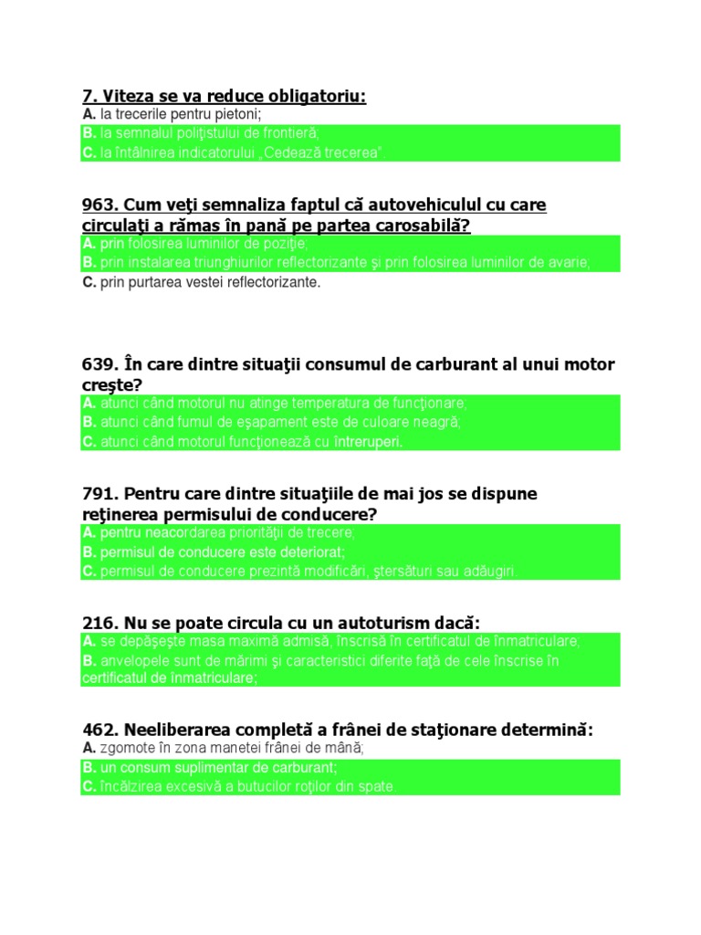 în care dintre situaţii sunteţi obligat să reduceţi viteza. A atunci când motorul nu atinge temperatura de funcţionare. Atunci când fumul de eşapament este de culoare neagră. C atunci când motorul funcţionează cu întreruperi.
