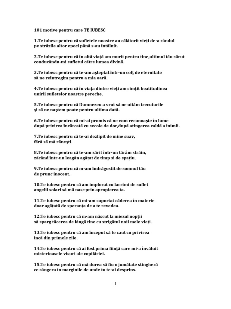 Textul conține 100 de motive de dragoste și apreciere față de jumătatea ta.