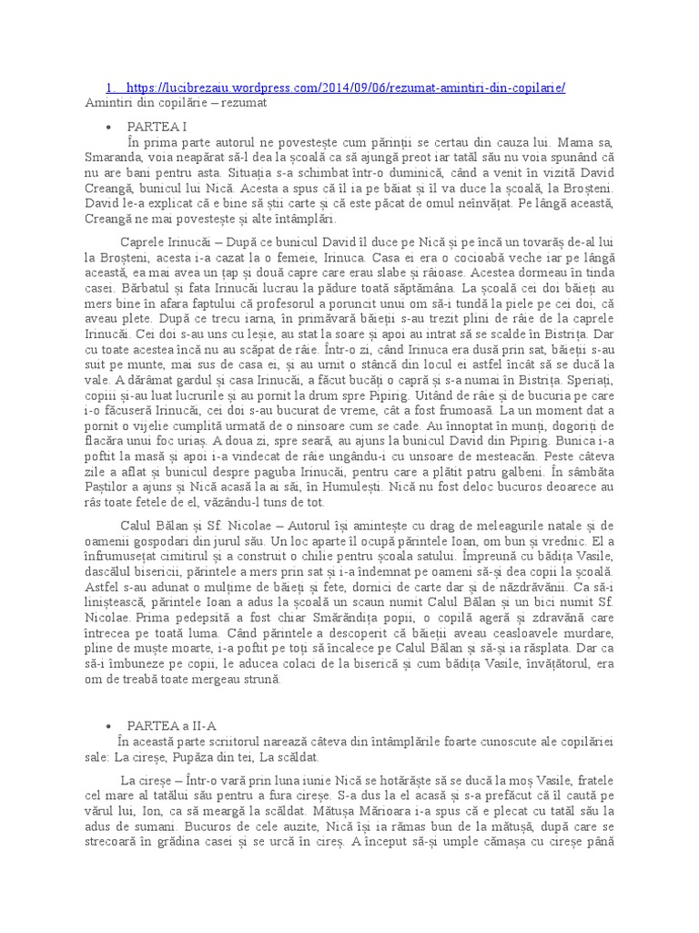 Acesta reuseste sa cuprinda actiunea importanta a textului. Amintiri din copilarie partea a ii a. Cu drag cu ne drag el ajunge la scoala. Unknown 27 ianuarie 2016 20 36.