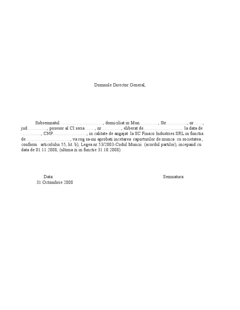 Contractul individual de muncă poate înceta astfel. B din codul muncii cu modificarile si completarile ulterioare contractul individual de munca poate inceta ca urmare a acordului partilor la data convenita de acestea. 53 2003 adica codul muncii a suferit modificari in luna mai 2011 modificari aparute in monitorul oficial al romaniei partea i nr 345 18 v 2011 dar poate nu toti au citit aceasta republicare a legii ce reglementeaza raporturile de munca in romania in momentul de fata. Reglementari in codul muncii art 55 lit b codul muncii art.