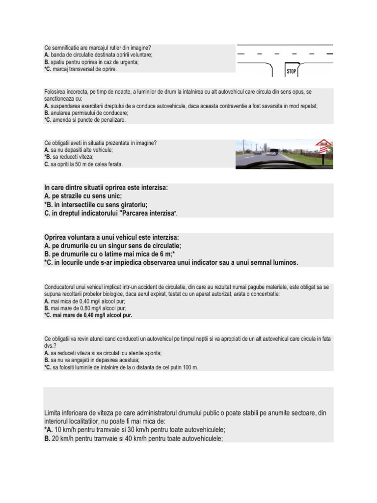 44 formularea variantei la urcarea pantelor este gresită posibil să fie greșită intenționat ca să ne păcălească. Când nu vă este permisă întoarcerea vehiculului. F se interzice oprirea voluntară a vehiculelor b pe trecerile la nivel cu calea ferată curentă şi la o distanţă mai mică de 50 m înainte şi după acestea. A când lăţimea drumului public este mai mică de 7 m b la urcarea pantelor c pe marcajul pietonal.
