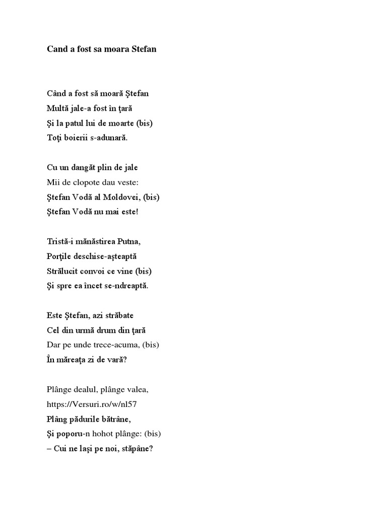 Cautare versuri cand a fost sa moara stefan. Viu şi teafăr să rămâie. Câte braţe n deznădejde către cer nu se nălţară. Traducerea cântecului cand a fost sa moara stefan interpretat de tronos grupul psaltic tronos din română în engleză.