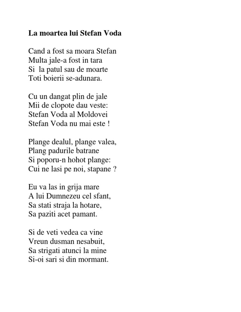 Cand a fost sa moara stefan versuri. Când a fost să moară ștefan grupul psaltic tronos. Plange dealu plange valea. Când a fost să moară ştefan multă jale a fost în ţară. Eminescu doina si ion aldea teodorovici.