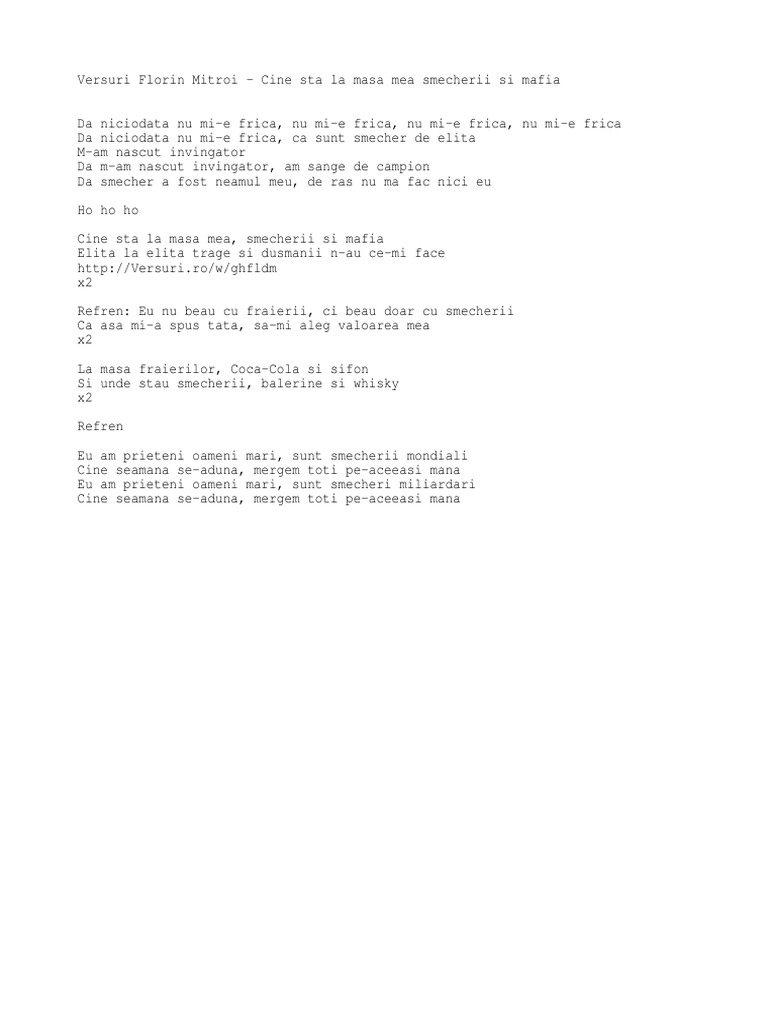 Cine sta la masa mea cu cine impart plapuma cine poate sa mi raspunda l as plati intr o secunda secunda din viata mea cand raspunsul mi l va da dar cine sta la masa mea. Secunda din viata mea cand raspunsul mi l va da dar cine sta la masa mea. Au trecut 4 ani de când cabron a lansat pe youtube piesa la masa mea alături de stefan banica cu chisaru maxim minculescu alexandru pop marius și hahaha production la productie. Cine sta la masa mea cu cine impart plapuma cine poate sa mi raspunda l as plati intr o secunda.