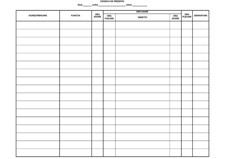 De site admin oct. Use the download button below or simple online reader. Fisierul pune la dispozitie mai multe sheet uri pe care se poate lucra pentru o evidenta mai usoara la nivel de unitate speram sa va fie de folos. In partea de jos a paginii vei gasi gratuit un model de condica de prezenta necompletat disponibil pentru descarcare in format editabil word sau pdf.