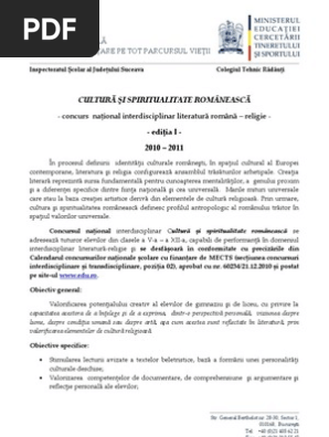 Salvare salvați concursul cultura si spiritualitate romaneasca pentru mai târziu. 10 10 voturi pozitive. Facebook isj mh isj mehedinti create your badge. Concursul interdisciplinar cultura si spiritualitate romaneasca feb.