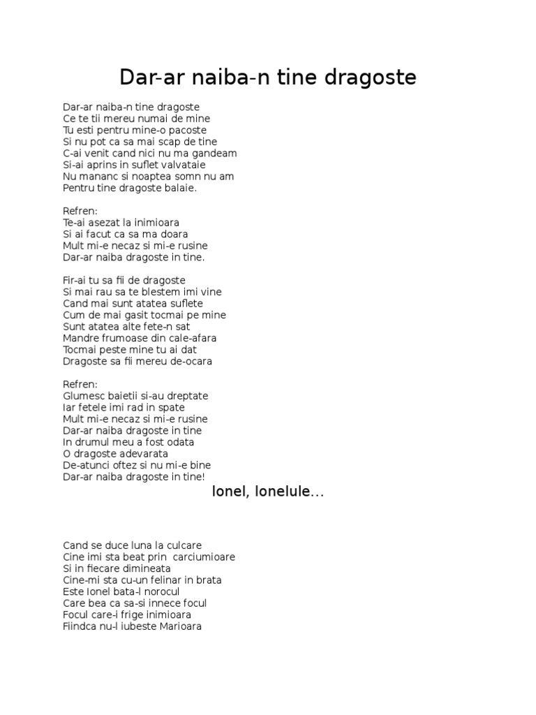 Dar ar naiba n tine dragoste. By continuing to use this website you agree to our policies regarding the. Tu eşti pentru mine o pacoste şi nu pot ca să mai scap de tine. Ai venit cand nici nu m asteptam si ai aprins in suflet valvataie nu mananc si noaptea somn nu am pentru tine dragoste balaie.