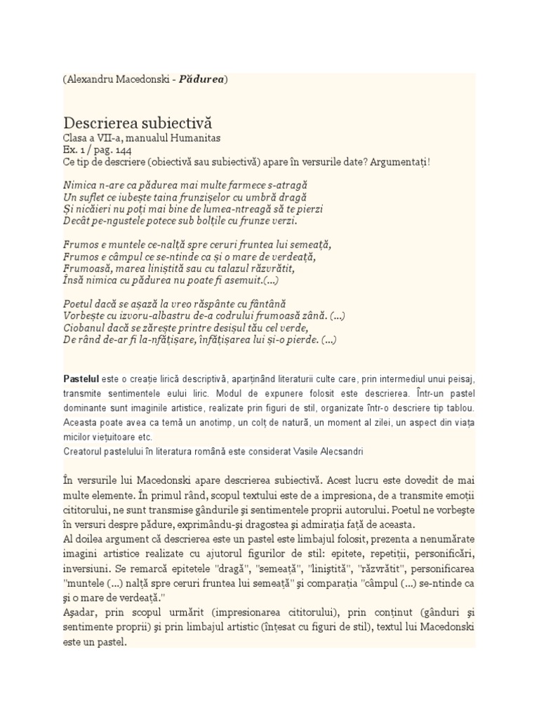 Mă apropii cu grijă de ea pentru a nu o deranja şi o privesc minute în şir. Vreau o descriere subiectiva a unei paduri 615758 intr o seara minunata am adormit cu gandul la o padure am inceput sa visez ca sunt intr o padure in care copacii vorbeau si florile cantau vesele era o atmosfera placuta si minuanta pasarile zburau si ciripeau vesele leii povesteau si maimutele se jucau in copaci animalele acestea salbatice erau foarte prietenoase m am imprietenit cel mai. Realizati o descriere obiectiva de o jumatate de pagina a unei paduri 734196. Puteti gasi foarte multe referate accesand categoriile din partea dreapta despre compunere cu descriere obiectiva a unei paduri uita te mai jos si o sa gasesti cele mai relevante rezultate pentru cautarea compunere cu descriere obiectiva a unei.