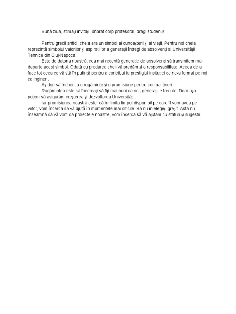 Discurs predarea cheii clasa 8. Poate prea deştept pentru clasa a opta. Discurs sefa de promotie facultatea de medicina 2012 duration. Cu totii stim ca e momentul sa va luati la revedere colegilor profesorilor si salilor de clasa in care impreuna ati petrecut atat momente fericite cat si momente mai dificile. Discurs util elevilor de a viii a şi a vii a pentru momentul special când se predă cheia.
