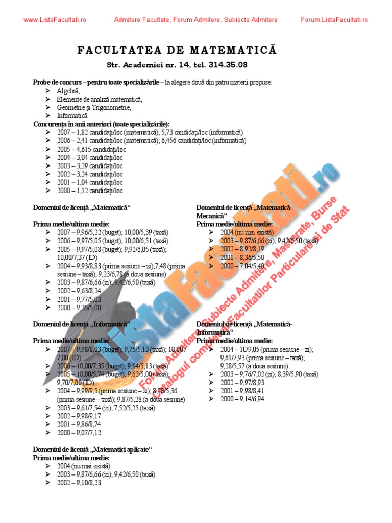 Facultatea de matematica si informatica. Subiecte admitere matematica informatica date in anii anteriori facultatea de matematica si informatica bucuresti analiza algebra geometrie informatica fizica de profesor jitaru ionel pe 15 07 2019 scrie un comentariu. Universitatea facultatea sesiune specializare an acces barem. Subiecte admitere politehnică 2019.