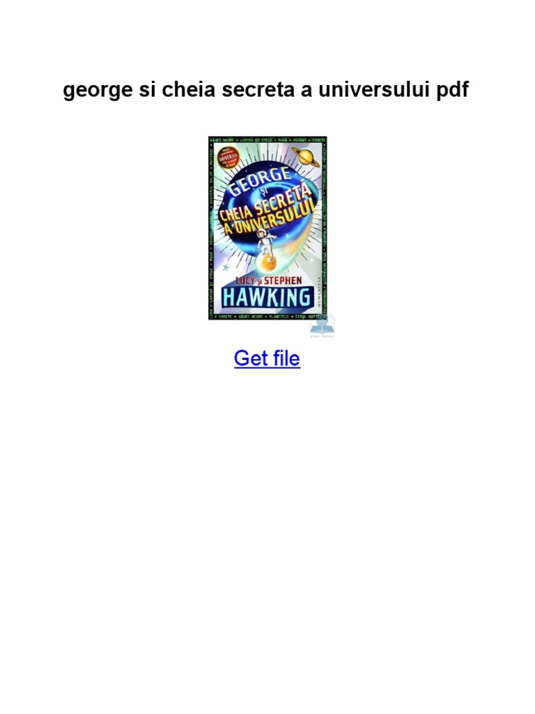 Cartea george si cheia secreta a universului stephen hawking lucy hawking in format pdf vă invităm să faceţi o călătorie prin întinderile nemărginite ale spaţiului extraterestru şi în toiul unei aventuri fantastice să descoperiţi misterele fizicii şi universului împreună cu george cu noii lui prieteni omul de ştiinţă eric şi fiica sa annie şi cu. Cheile genelor richard rudd. Pe timp de zi pe cer nu opiatã de noi steaua cea mai importantã pentru viaþa eia i am dat un nume deosebit. Romanul expus publicului larg deopotriva copii si adulti dornici de cunoastere este prezentat sub forma unei povesti magice ce trateaza probleme importante ale timpurilor noastre spre exemplu conservarea resurselor naturale si salvarea pamantului de la poluare.