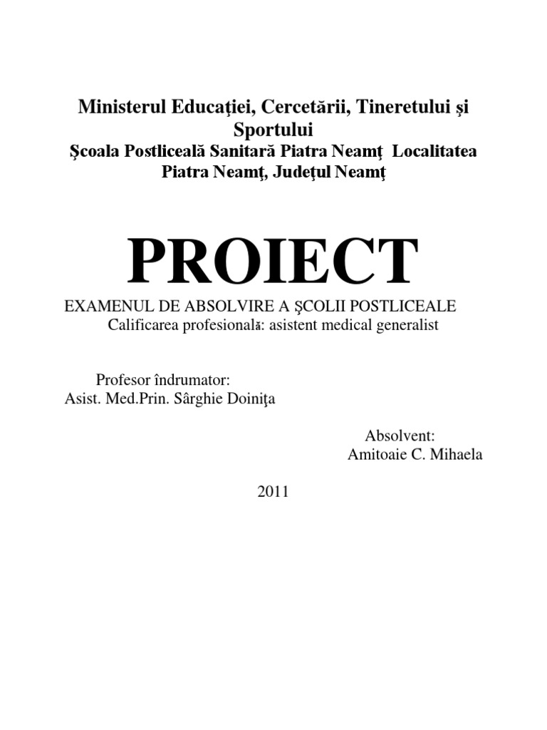 Lucrari de licenta asistenta medicala generalista redactate de cadru medical. Ai nevoie de doar 10 puncte. Lucrare de licenta pentru scoala postliceala sanitara specializarea asistenti medicali generalisti cuprins. Iti recomandam sa te uiti bine pe extras si pe imaginile oferite iar daca este ceea ce ti trebuie pentru documentarea ta o poti descarca.