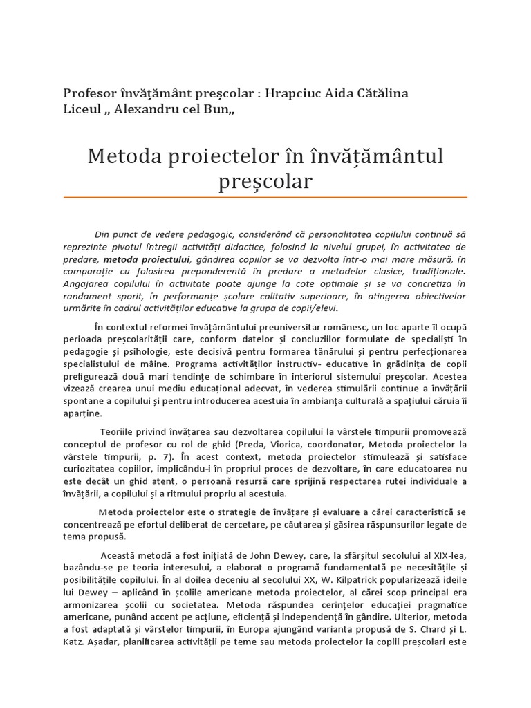 Metoda Proiectului In Invatamantul Primar