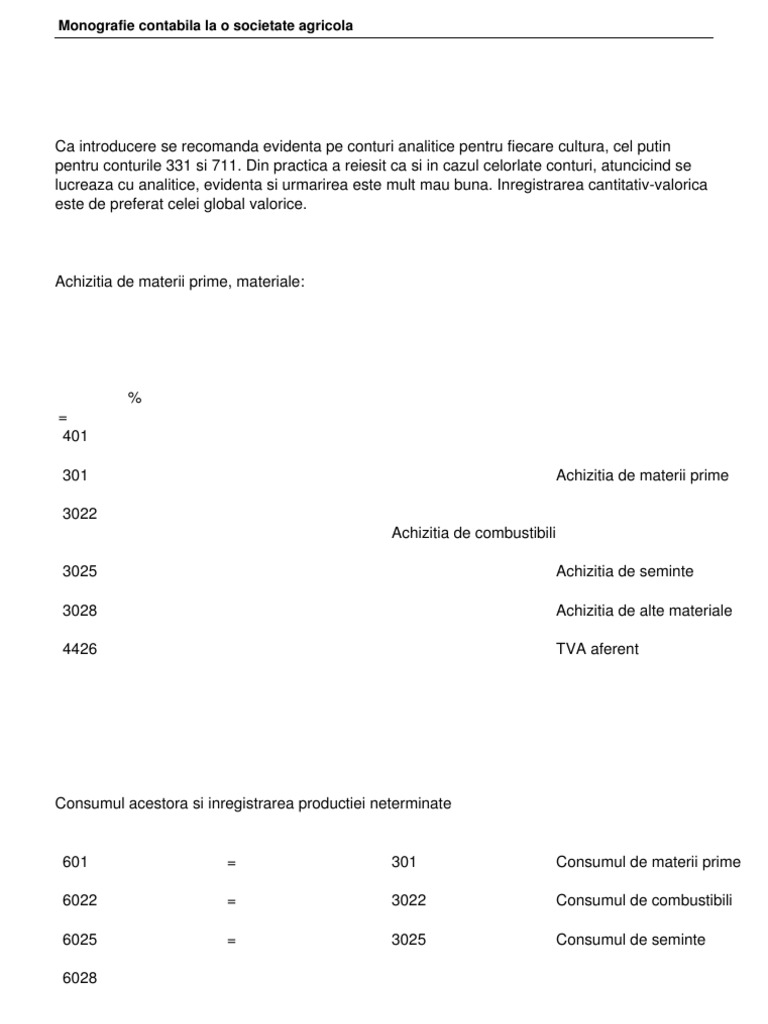 Luam drept exemplu un caz in care productia este in curs de executie productie neterminata si vom afla de la expert care este monografia contabila calculatia costurilor tratamentul contabil si fiscal. Cateva exemple de monografii contabile de interes maxim pentru profesionistii din domeniu. Atentie la data valabilitatii intrebarii. Monografie contabila productie neterminata agricultura atentie la data valabilitatii intrebarii.