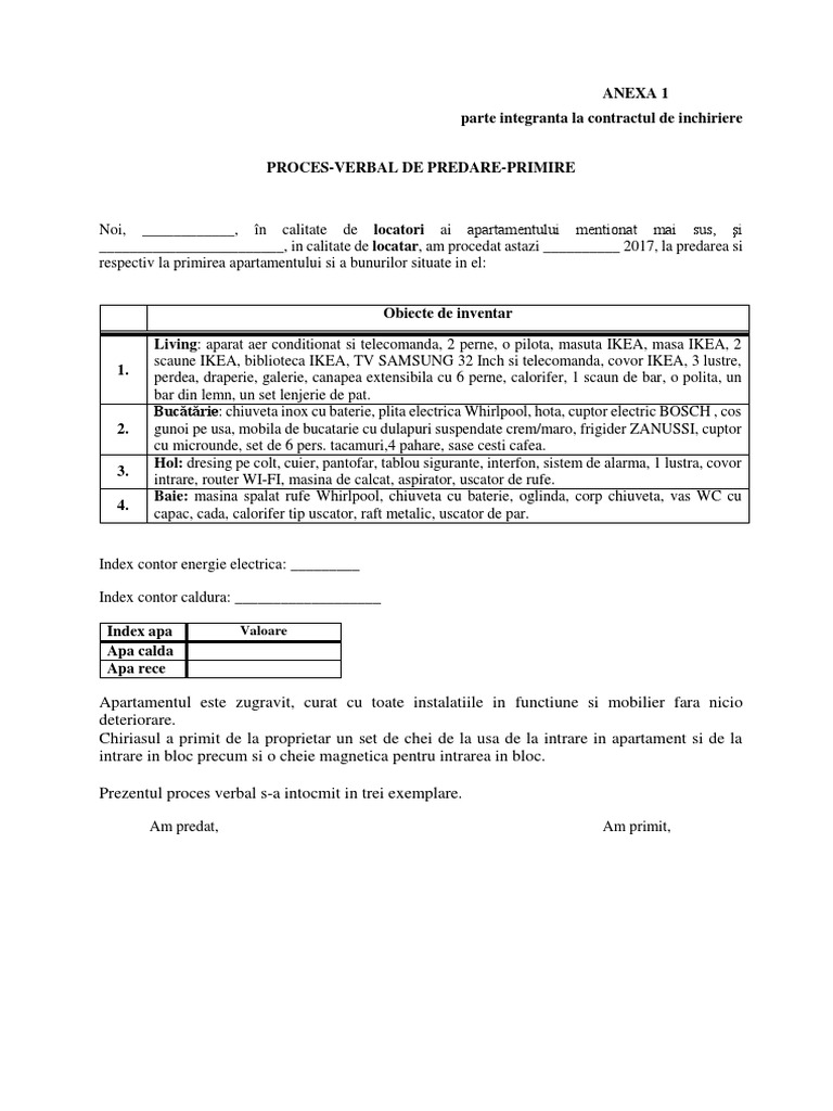 De linii si un nr. Proces verbal de predare primire inventar cameră camera student a nr. Procesul verbal de inventariere. Proces verbal de predare primire inventar locuinta inchiriata definitie.