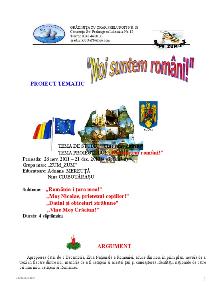 Ziua romaniei miercuri 2. 0 au spus mulţumesc. Proiect de activitate grupa. 2009 concediu fara plata marti 01.