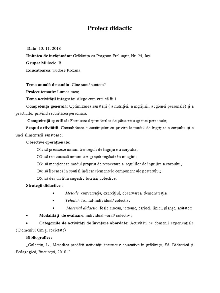 17 ianuarie 2009 14 40. Iti recomandam sa te uiti bine pe extras si pe imaginile oferite iar daca este ceea ce ti trebuie pentru documentarea ta il poti descarca. Acest proiect trateaza proiect didactic romana grupa mijlocie. Cum se va desfasura ziua lor la gradinita.