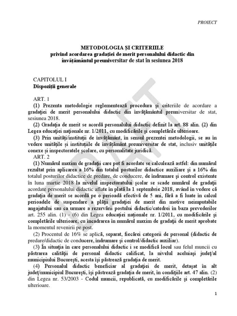 Proiect metodologie gradatie de merit 2018. Alte articole din categoria anunturi scoli. Proiect metodologia şi. Gradația de merit se atribuie pe o perioadă de 5 ani potrivit legii educației.