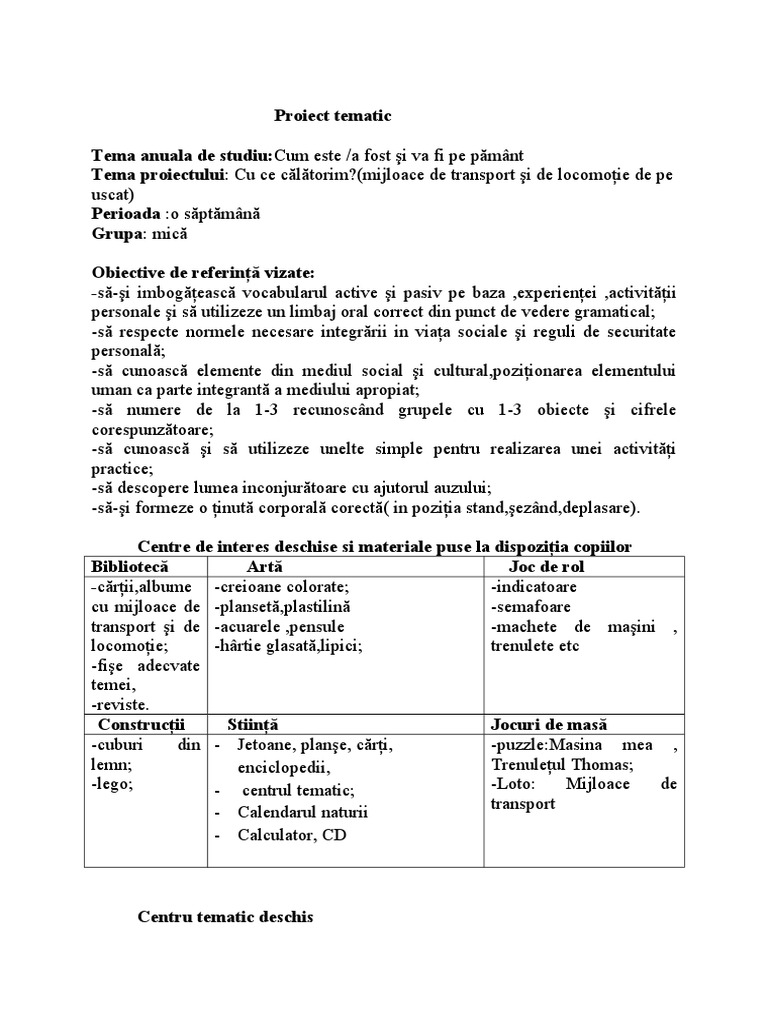 Perioada tema anuală de studiu proiect tematic subtemă 10 09 14 09 2018 evaluare inițială 17 09 21 09 2018 evaluare inițială 24 09 28 09 2018 cine sunt sun. Materialul reprezintă o sursă de inspiraţie atât pentru profesorii din învăţământul preşcolar cât şi pentru părinţi. Proiect tematic mijloace de transport. I grupa mijlocie tema anuală.