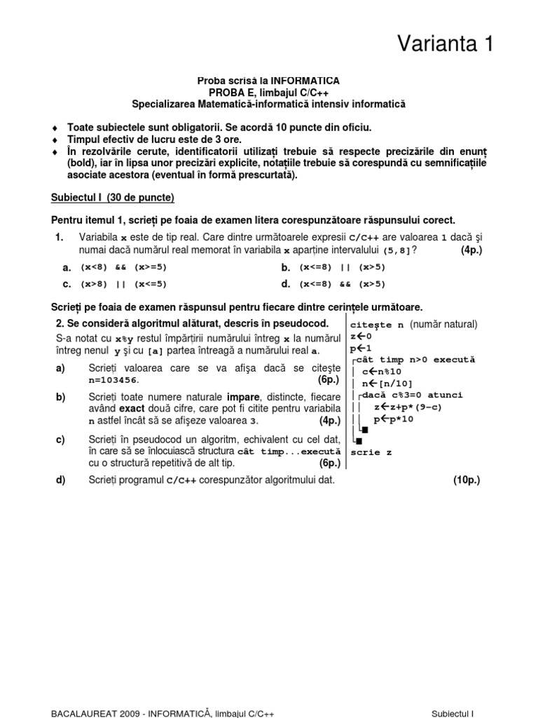 Rezolvari variante informatica c bac 2008 şiruri monotonie mărginire convergenţă bac 2009 rezolvari informatica intensiv si neintensiv de la www. 329 din 2006 iar tu ai putea să te afli în situaţia de a le încălca acum. Raspunsuri corecte variante bac informatica 2009. Subiectul al ii lea problema 5.