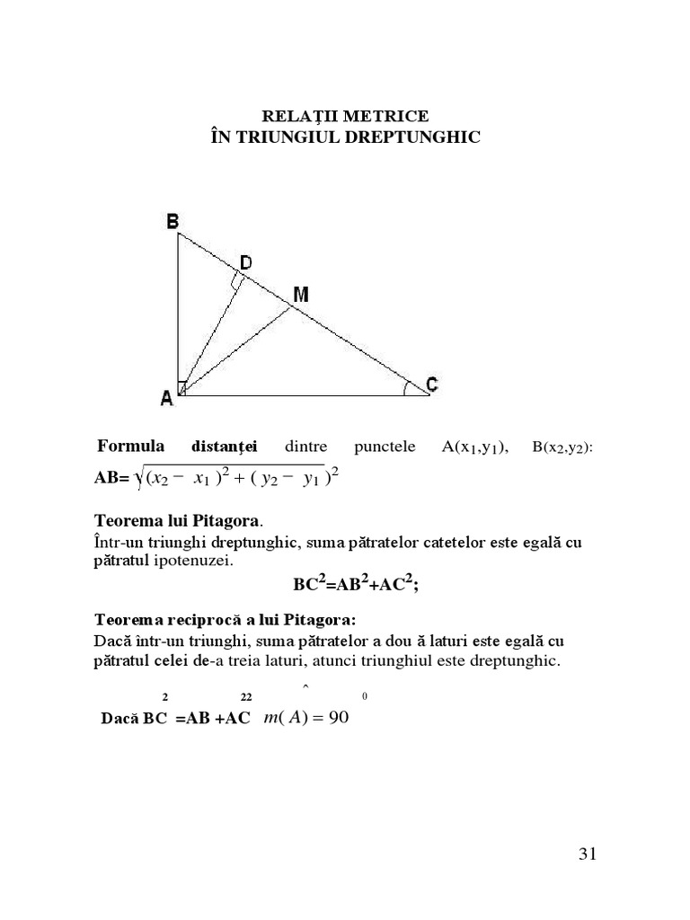 Relatii Metrice In Triunghiul Dreptunghic Teorie