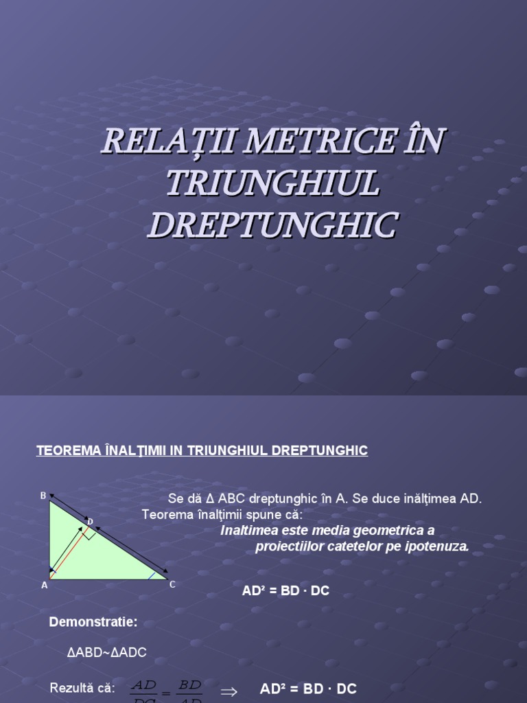 Iar ad este. Relatii metrice in triunghiul dreptunghic. Abc m a 90 ad bc c. Proiectia ortogonala a unui segment pe o dreapta este un segment sau un punct.