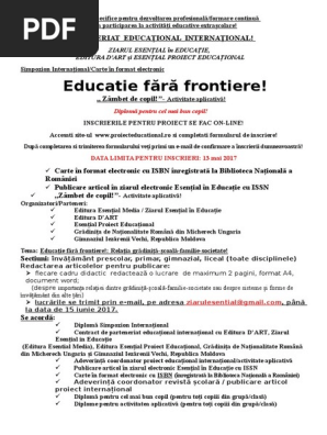 Simpozion internațional carte în format electronic educatie fără frontiere organizat de esențial proiect educațional pitești argeș. 3 martie 2020 pdf92 64 mb esential in educatie nr. Rela ț ia grădini ț ă ș coală familie societate ș i concurs gratuit zâmbet de copil. Educatie fara frontiere editia 2020 scoala altfel.