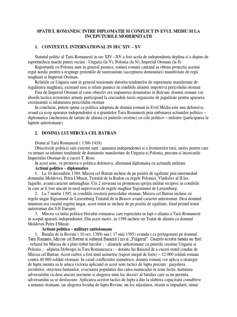 Spatiul romanesc intre diplomatie si conflict in evul mediu si la inceputul modernitatii in evul mediu cele trei state medievale romanesti au fost tot timpul inconjurate de mari puteri crestine care au manifestat tendinte de hegemonie asupra spatiului romanesc.
