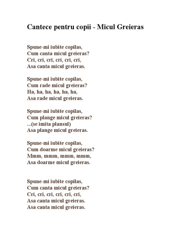 Spune mi iubite copilas versuri. Spune mi iubite copilas cum rade micul tralala greierasul cantece copii lyrics. Micul greieras versuri. Gasca zurli versuri micul greieras spune mi iubite copilas cum canta micul greieras. Cri cri cri cri cri cri asa canta micul greieras.