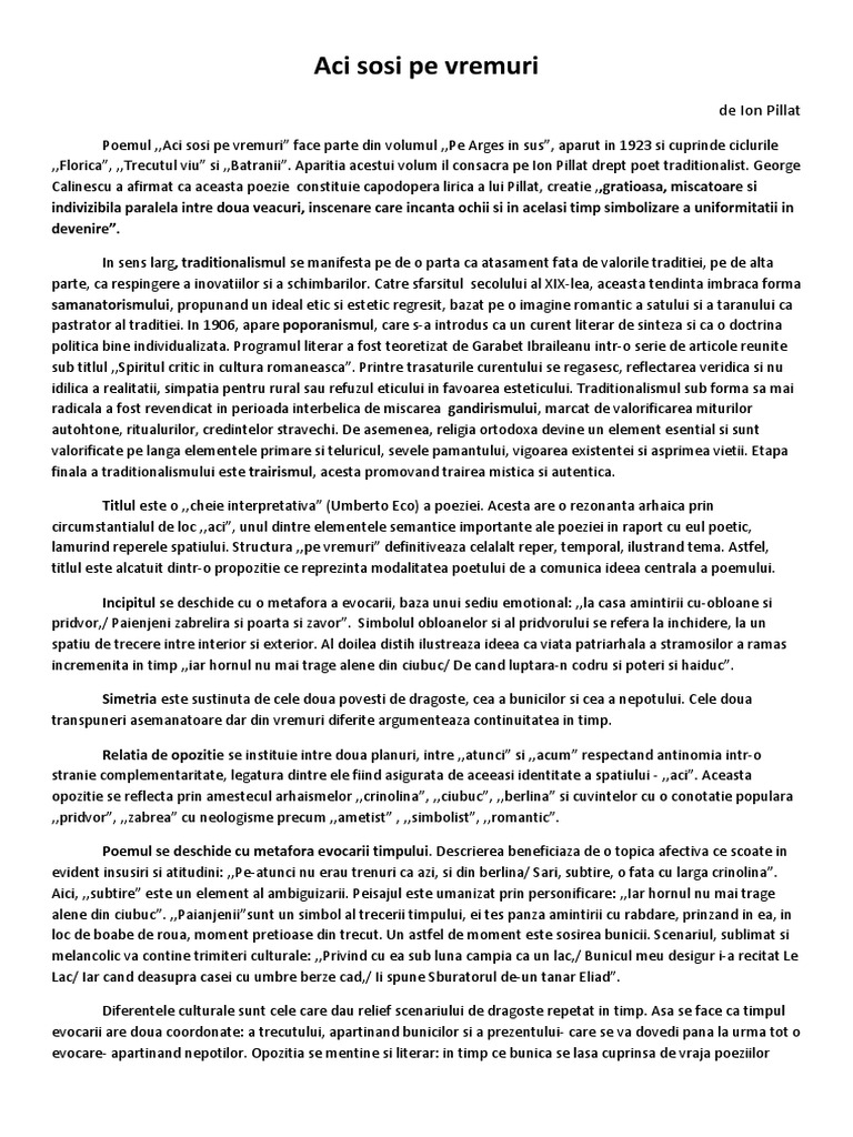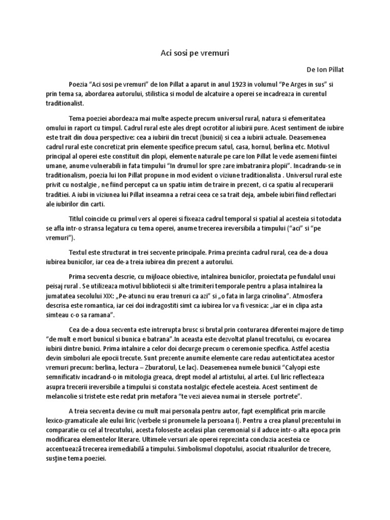 Tema si viziunea despre lume aci sosi pe vremuri 1 mai 2019 de staff editorial on pillat este unul dintre cei mai reprezentativi poeți din perioada interbelică inceputul secolului xx prevede o luptă importantă între curentele literare. Poezia aci sosi pe vremuri este de factur tradiionalist inclus n volumul pe. Tema si semnificatiile titlului. Tema sa timpul vazut ca trecere intrepatrunsa cu biografia umana si cu varstele efemere ale fiintei confera strofelor de respiratie neoclasica 18 distihuri si 3 versuri laitmotivice cu masura ampla de 13 silabe o tonalitate solemna melancolica.