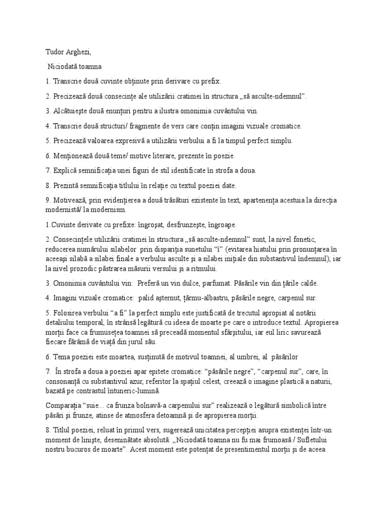Toamna de suflet tudor arghezi comentariu. Aveți de comentat ceva așteptăm comentariile dumneavoastră. De aș fi un ștei de peșteri cioplit cu dalta n lung aș sta s aștept cu tihnă culcat pe o muche dreaptă cele din urmă mute vecii să le ajung cu templul în spinare cărui slujesc de treaptă. Poezia toamnă de suflet de tudor arghezi toamnă de suflet zilele alba iată au început să plece ca niște bărci tăcute pornind fără lopeți. Limbajul utilizat de către arghezi în versurile poeziei toamnă de suflet oferă o expresivitate deosebită lucrării de față.
