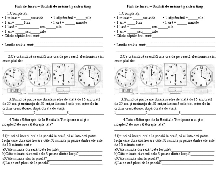 Unitati De Masura Pentru Timp Fisa De Lucru