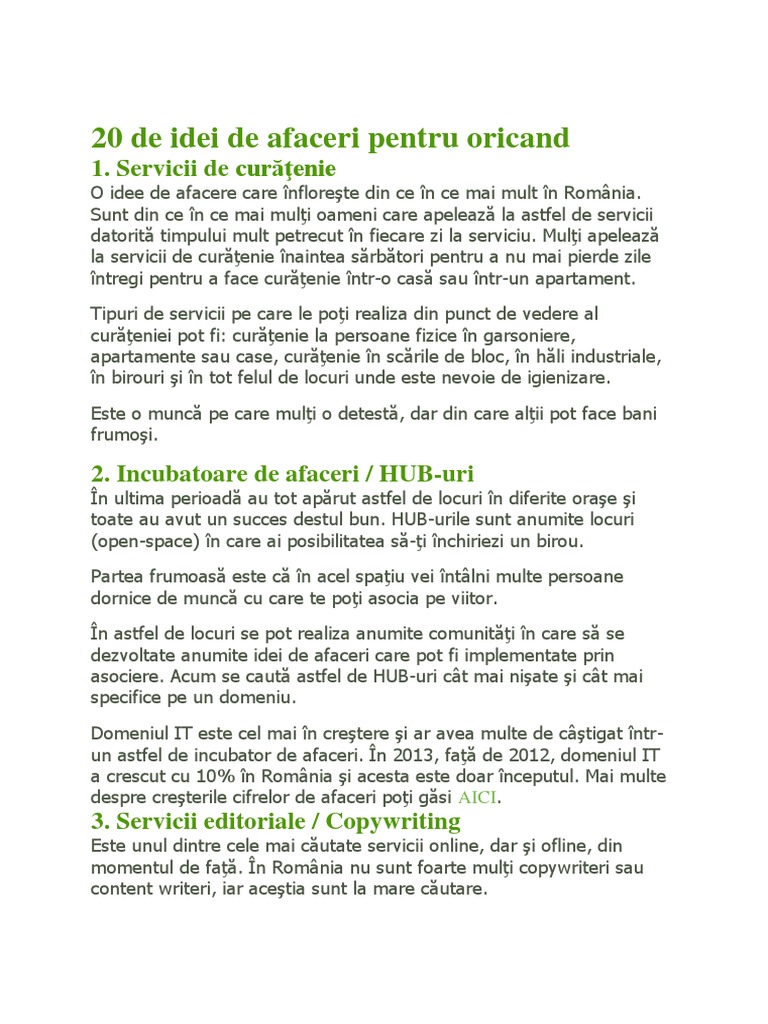 O plantatie de coacaze negre este o afacere din care puteti obtine un profit de 10 000 de euro la hectar iar recuperarea investitiei poate fi realizata dupa 2 ani. Totodata consider ca viata noastra este controlata la maxim fiecare miscare. Investitia de 5 000 de euro pe hectar nu include achizitia terenului dar insumeaza cumpararea butasilor de coacaz negru pregatirea terenului plantarea efectiva a butasilor si costurile cu forta de munca. Daca vrei asadar sa construiesti o afacere profitabila alege cu incredere o spalatorie auto.